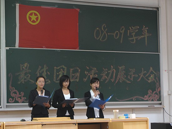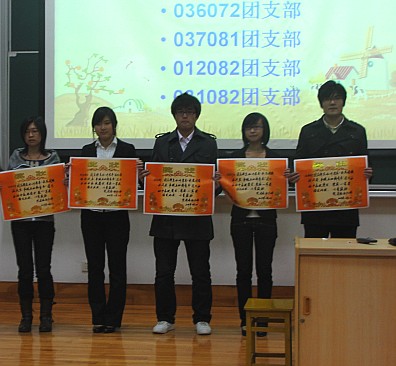 大会开始,全体起立唱中国共产主义青年团团歌。pg国际电子网站pg国际电子网站副院长吴荣顺老师发表讲话,肯定了pg国际电子网站pg国际电子网站各系领导及团干部的工作,并强调了学院今后应向专业化、制度化方向发展。随后各系分别选出一个优秀支部的团日活动作展示并进行选字答辩。这次的团日活动全院共评选出一等奖6名,二等奖15名,三等奖45名。其中经管系荣获三个一等奖,赢得了校领导的一致好评。这三个团支部分别为07财管2支部,08公管支部,08国贸支部。07财管2支部代表经管系参加了此次团日活动展示并作出了精彩的答辩。
