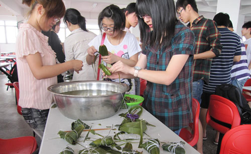 农历五月初五,是中华民族的传统节日——端午节。人们以划龙舟、包粽子、缝香囊等形式纪念伟大的政治家、爱国诗人屈原。6月2日下午,经济管理系分团委、学生会在学院二食堂举办了端午节纪念活动。系党总支书记黄苏宁、分团委书记羊栋及部分辅导员和同学们一起参加了活动。