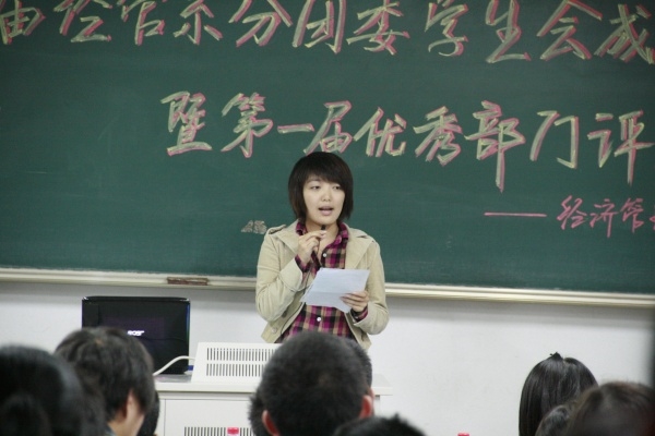 成贤院415,经管系分团委学生会办公室,留给我最大欢乐与记忆的地方。已经不知道有多少个夜晚我们几个人是11点多在阿姨责备又无奈的眼神下离开。天气冷了,下雨了,我们四个人合着一把伞,换着取暖跑回宿舍。那个办公室里贴着我们的海报,慢慢看过去,刚哥你总是无处不在,每个地方都有你的身影,今天你开心吗?为了节省活动开支,你为了一分钱和我吵,这个仇我记你一辈子。谢谢你为经管做了这么多。王窝,你的蘑菇头的照片还在那边,这些年我们俩最难了,作为传说中经管最强势的两个女人,我们俩也默默地把自己当男人使了,就着冷水吃饭,搬过桌子,爬过梯子,为了经管系的名声和别人唇枪舌战过。我们走过了最坚强的一年,我们也收到了最美的称赞。这个天下不是我们的了,我们该好好学习,好好工作了。谢阳,最好的伙伴,最亲的战友,作为大家长,你背负了太多的压力和负担,我记得我们最忙碌的时候,你白头发,皱纹都有了,而身材也没有那么稳重了。最近你总是和我说,学生会的事情都留给下一届的人做吧,我不管了。但是,是谁老在开学前期召开网络会议,讨论招新时宜;是谁每天及时更新经管人的状态;是谁还在晚上11点还站在实验楼114教室窗口看宣传部的小孩们画海报,心疼他们但又默默走开,跟我说,怕自己已经没有立场去看他们,所以选择默默陪着他们画海报。谢阳,你说我认识的最有担当的男人,很多委屈自己咽着,很多困难自己扛着,经管如此多娇,谢阳是第一大功臣。