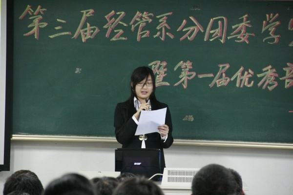 在座的各位大部分的人不太清楚,但有的07、08的同事是很知道我的,我从来是一个还算控得住自己情感的人,但对眼泪,我一直是束手无策,情到浓时真的是很难抑制那泪水。不怕大家笑话,今天当稿子写到这里时,寥寥几百字,我已经眼圈红肿、泣不成声。我一个人躲在办公室的小角落里,想把眼泪都留干,因为我答应过施清,我要克制自己的泪水。因为我不再是组织部的部长,更不是当年的办公室的那个小干事。今天我既然以第三届经管系分团委副书记的身份在这里发言,我就要肩负起自己的责任。从办公室调任到组织部,从学生会到分团委,从2008年11月5号至今,我陪伴着经管系分团委学生会一起成长。我见证了太多的光辉与荣耀,也经历了那些挫败与悲伤。这个集体带给了我太多快乐,给与了我太多力量,教会了我太多知识,让我有了太多的震撼。而现在就到了我为这个集体付出的时候了。06、07的学长学姐为我们从一片荒芜中开辟了一条方向明确的道路,现在的我们就要带着他们的期许,沿着这条路朝着那个方向坚定不移的走下去,让这条路越走越宽,让前方愈行愈亮。我也会继续着07学长学姐未完成的道路,做好这个家庭的大家长,让我们第三届经管系分团委学生会 人、心、家齐。今天在这里我想代表我们第三届的所有成员给所有第二届功成身退的你们一个承诺,我们不会让你们的心血白费,我们一定会让这个集体一直壮大下去。路漫漫其修远兮,吾将上下而求索。我们经管系的未来定会灿烂如花!