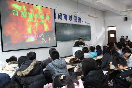 12月9日,pg国际电子经济管理系、保卫办邀请南京市高新区消防中队共同举办了以“共筑心中防火墙,搭起生命安全网”为主题的消防知识进校园活动。丹田物业协办、09级物流1团支部承办了此次活动。