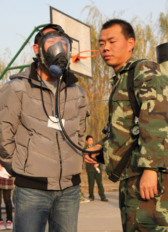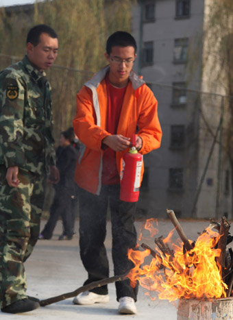讲座结束后,经管系各班班长、团支书和各宿舍楼长参加了演练。消防大队官兵示范了灭火器的使用方法,手把手教大家救火时如何打水袋、装备压缩汽缸等专业消防技能。