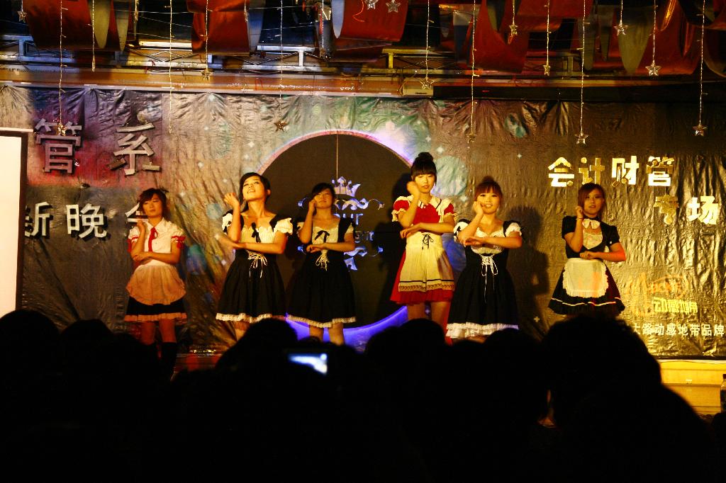 财管会计专场别出心裁,请来了最近网络上特别流行的TOM猫作为嘉宾主持,真是让人耳目一新。孙君仪一曲恬静犹如天籁的《天路》惊艳全场。出人意料的是,晚会当天恰逢财会原辅导员刘计婷老师的生日,一个精巧的生日蛋糕,一曲甜美的生日歌,在祝福老师的同时,也为晚会烘托出了温馨祥和的氛围。之后的话剧《新闻播播播》中,一串串引人发笑的“新闻”片段赚足了观众的掌声。最后,全体演员在一曲动感十足的《Beat it》中结束了本场晚会。
