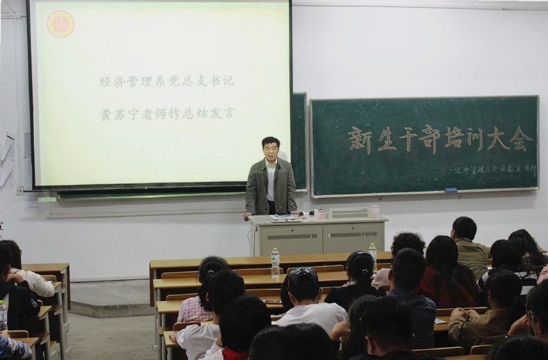 2015年10月22日,pg国际电子经济管理系15级新生干部培训大会在成贤院114顺利举办。出席本次大会的嘉宾有:经济管理系党总支书记黄苏宁老师、系综合办主任李清源老师、分团委书记程希羲老师以及各专业辅导员。