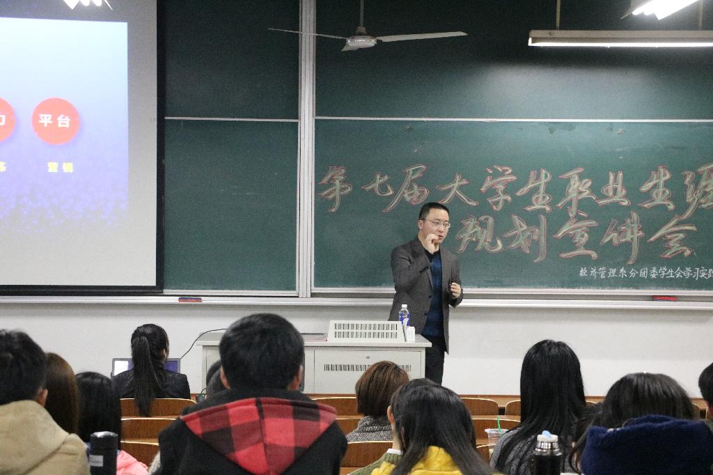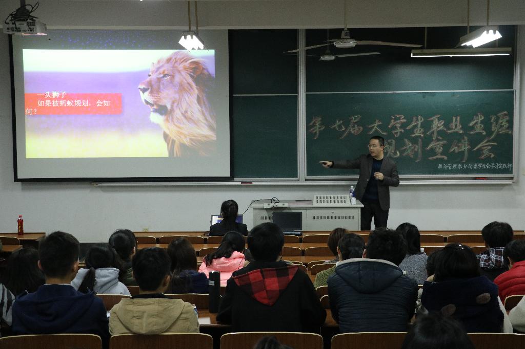 宣讲会开场由主持人简要介绍了本次职业规划大赛的流程及准备内容,紧接着由羊栋老师介绍了曾经优胜者的比赛经历,使得在座诸位参赛者对此项赛事有了清晰的了解。