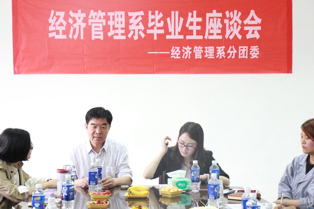 6月1日上午,由经济管理系分团委举办的2016届毕业生座谈会在成贤经济管理系会议室举行。我系党总支书记黄苏宁老师、综合办主任李清源老师、分团委书记程希羲老师以及各专业辅导员老师出席本次座谈会。来自我系各专业的20名毕业生代表参加了座 谈会。