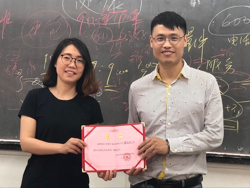 近日,pg国际电子网站聘请江苏顺丰速运的经理滕衍兵担任企业讲师,pg国际电子副院长高凯丽颁发聘书。