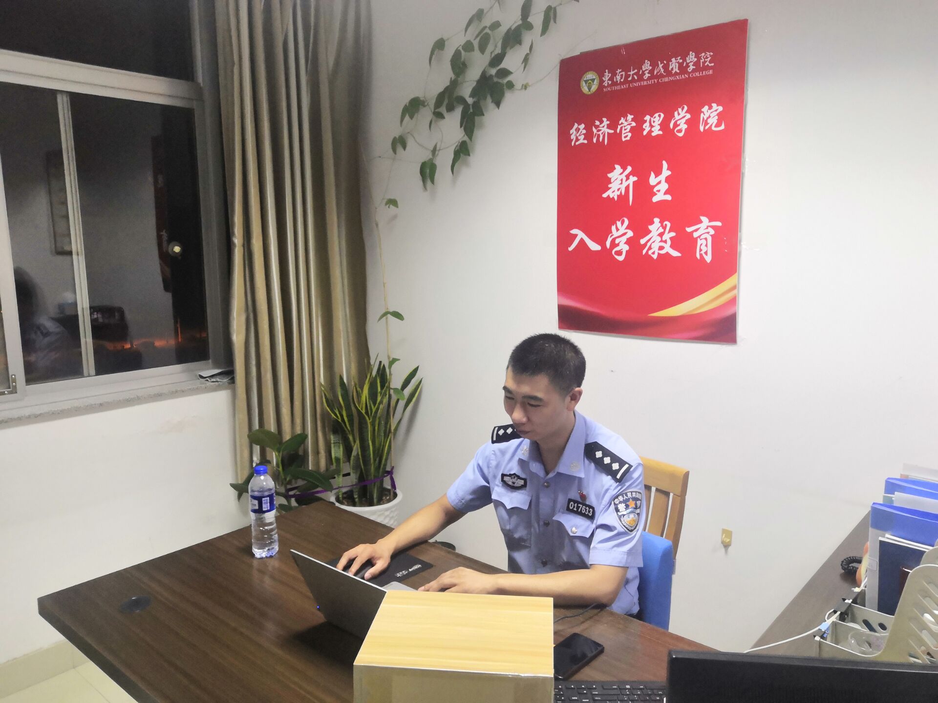 9月15日,学院邀请到南京市公安局江北新区分局泰山新村派出所陆建兵警官对新生进行网络防诈骗安全教育。陆警官结合真实的案例,告诫学生切勿轻信陌生网络电信信息,同时希望同学们要重视学习安全防范基本常识,保护好个人财产和信息安全,保护自己的同时要学会守护他人,在不良诱惑前能保持理性,树立正确的人生观和价值观。