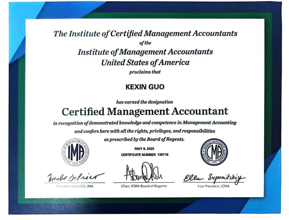 CMA由全球最大的致力于发展管理会计和金融管理的专业机构——IMA(美国管理会计师协会 The Institute of Management Accountants)进行资格评审和认证。