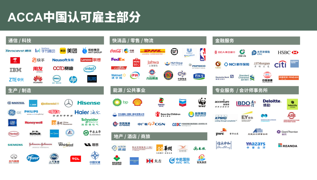 5.ACCA协会全球超7900家认可雇主,优先提供职业发展机会,覆盖世界500强、大型央国企、民营企业、跨国公司等各类知名企业。其中,部分企业于常规薪酬之外针对ACCA持证人还会额外发放资质补贴。