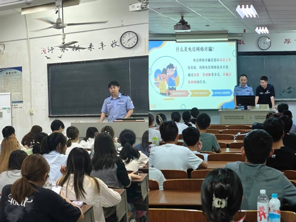 9月26日至10月8日,pg国际电子网站特邀泰山新村派出所王雷、李斌两位警官进班级为同学们上反诈第一课。两位警官结合在学生群体中发生的真实案例,深入剖析了电信诈骗的常见手法与危害,并针对不同诈骗手段传授有效的防范策略。开学反诈第一课切实增强了同学们的反诈意识和自我保护能力,也为构建安全、稳定、和谐的校园环境提供了有力保障。