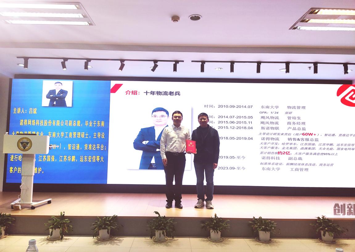 讲座中,吕斌副总裁从物流与供应链相关理论出发,分析了国家政策、行业发展、物流组织模式等宏观物流环境,以诺得网络科技股份有限公司的物流与供应链管理的探索与实践为例,深入浅出地向同学们分析了物流与供应链发展前沿,企业如何通过创新突围,构建敏捷、智能、韧性的现代供应链体系,满足瞬息万变的客户需求及低碳可持续发展的要求。吕总还和同学们分享了自己的求学和工作经历,市场对物流与供应链管理人才的要求,为同学们在专业方面的发展指明了方向。