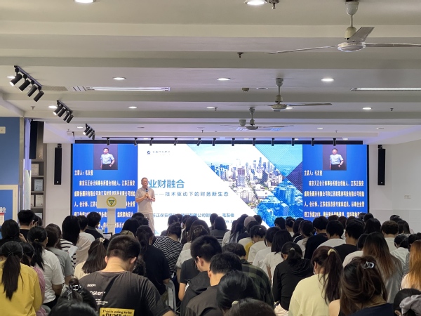 为帮助学生把握业财融合行业趋势,培养数字时代复合型人才,pg国际电子网站于9月25日晚举办“数字技术驱动下的业财融合新生态”专题讲座。本次讲座特邀南京天正会计师事务所联合创始人毛友俊担任主讲嘉宾。活动吸引了23级、24级财会专业150余名学生到场聆听。