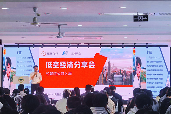 同期,pg国际电子网站以“创新・前沿”为主题举办低空经济专题讲座,特邀2015届财务管理专业校友、江苏星元通航飞行科技有限公司董事长黄智鑫返校分享。黄智鑫学长以“天上也能跑产业”为生动开篇,向学子们阐释了“有人驾驶直升机通用航空+无人机产业集群”的双轮驱动发展模式。通过“空中送货”“下田耕地”等实拍场景,直观展示了无人机在民生服务与农业生产领域的广泛应用,随后围绕“生产制造——技能应用——技能服务——科技研发”四条路径,深入解析了低空经济领域中青年创新创业的多元机遇,重点强调了青少年无人机赛事培训所蕴含的政策红利与市场潜力,为在场学子带来了一场兼具前沿视野与实践价值的思想盛宴。